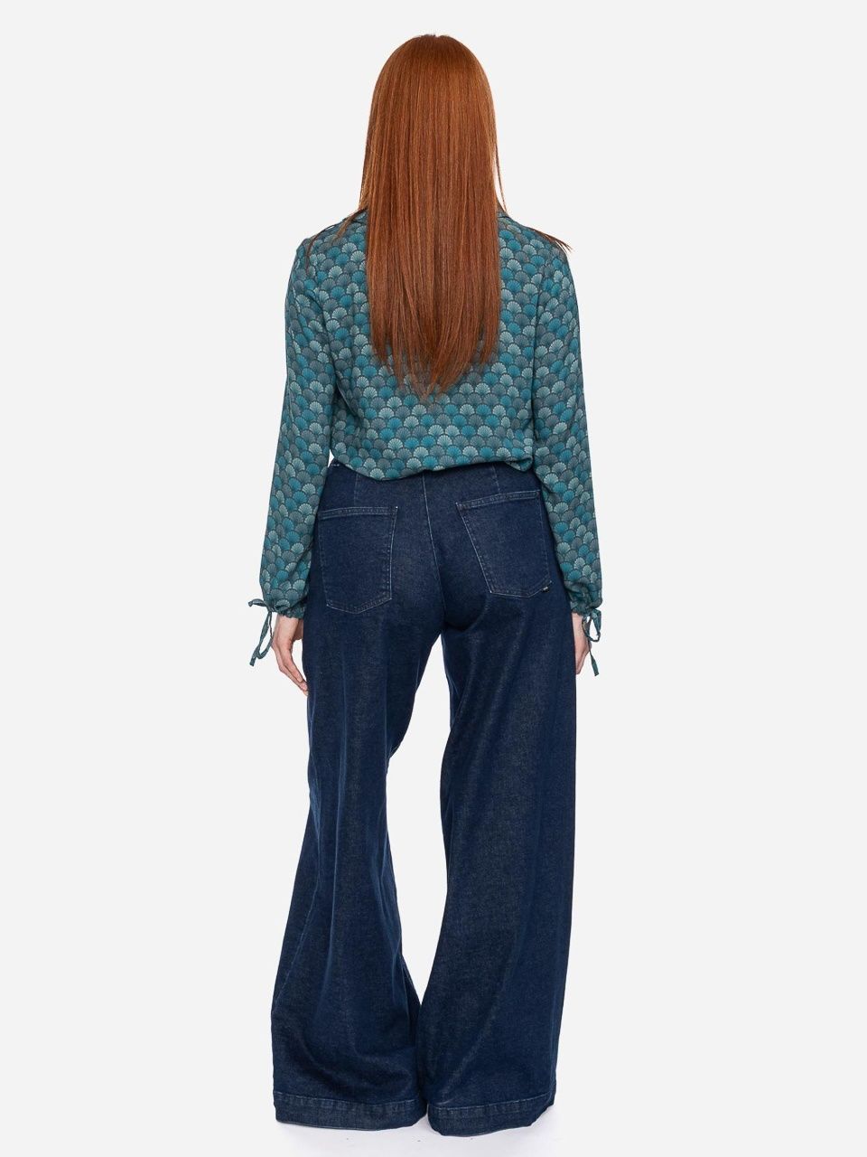 ATO Berlin | Blouse Liana met teal petrol retro patroon