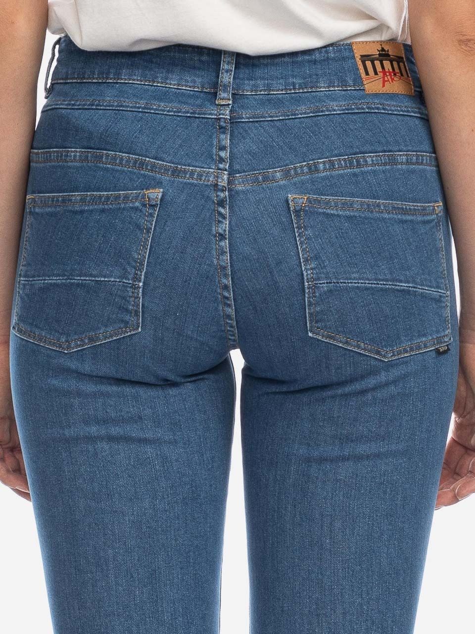 De ATO Berlin jeans Karlie is de perfecte broek voor vrouwen die van een authentieke jaren 70 look houden. De broek is high-waisted met een verhoogde tailleband en een uitlopende pijp waardoor je benen langer lijken. De jeans broek is gemaakt van een materiaal met lichte stretch, sluit goed aan op de bovenbenen en heeft een aangename draagcomfort. Er zitten twee steekzakken en twee achterzakken op. De jeans heeft een ritssluiting en voorgevormde panden voor de perfecte pasvorm. De broek sluit met een knoop.