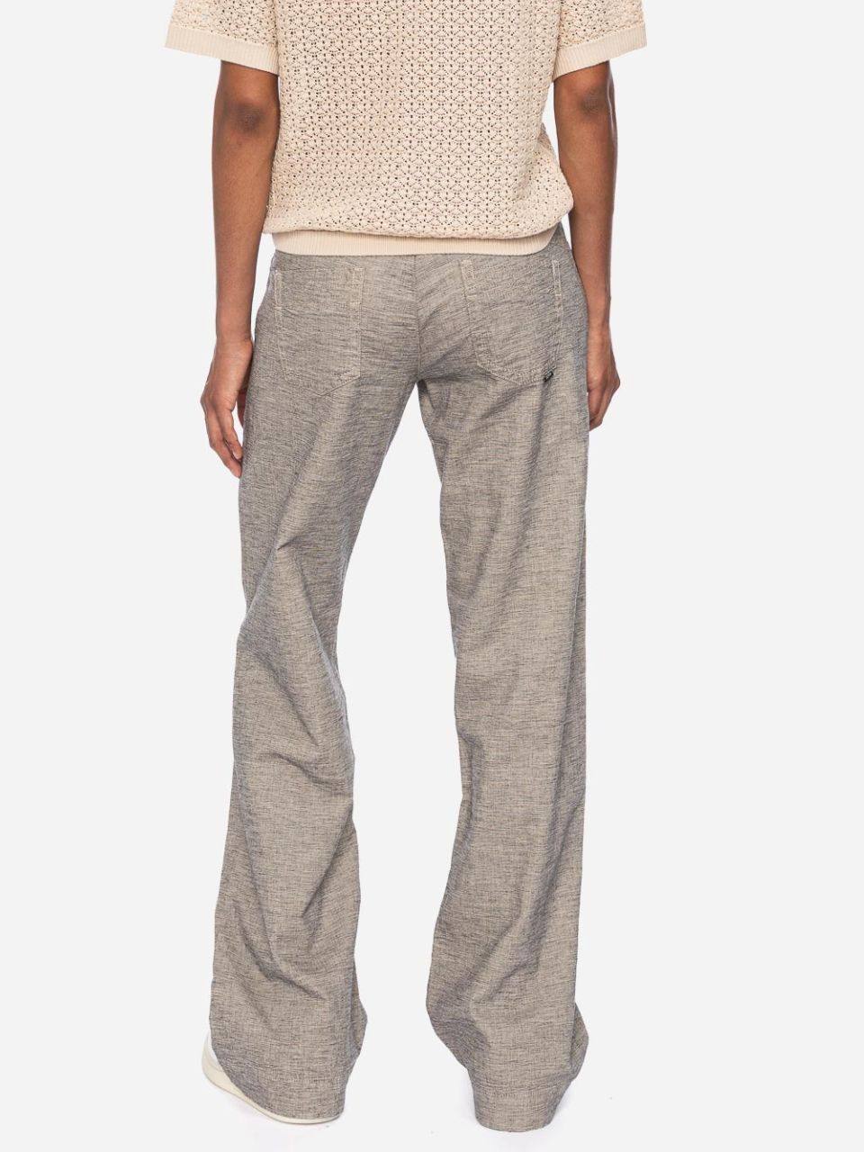 De mix van katoen, linnen en een vleugje elastaan zorgt voor een natuurlijk gevoel en een soepele valling. De subtiele beige-grijze melange voegt een ingetogen elegantie toe, waardoor de Lilia een veelzijdige basic is voor relaxte zomerstijlen.