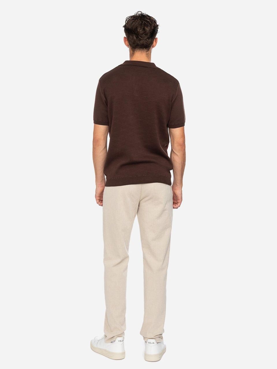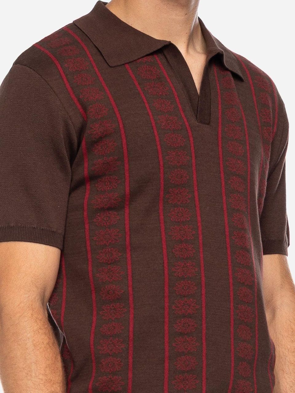 ATO Berlin | Polo Charles, bio katoen, bruin rood jacquard bloem