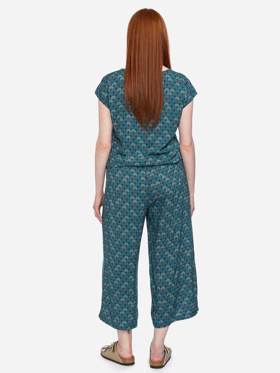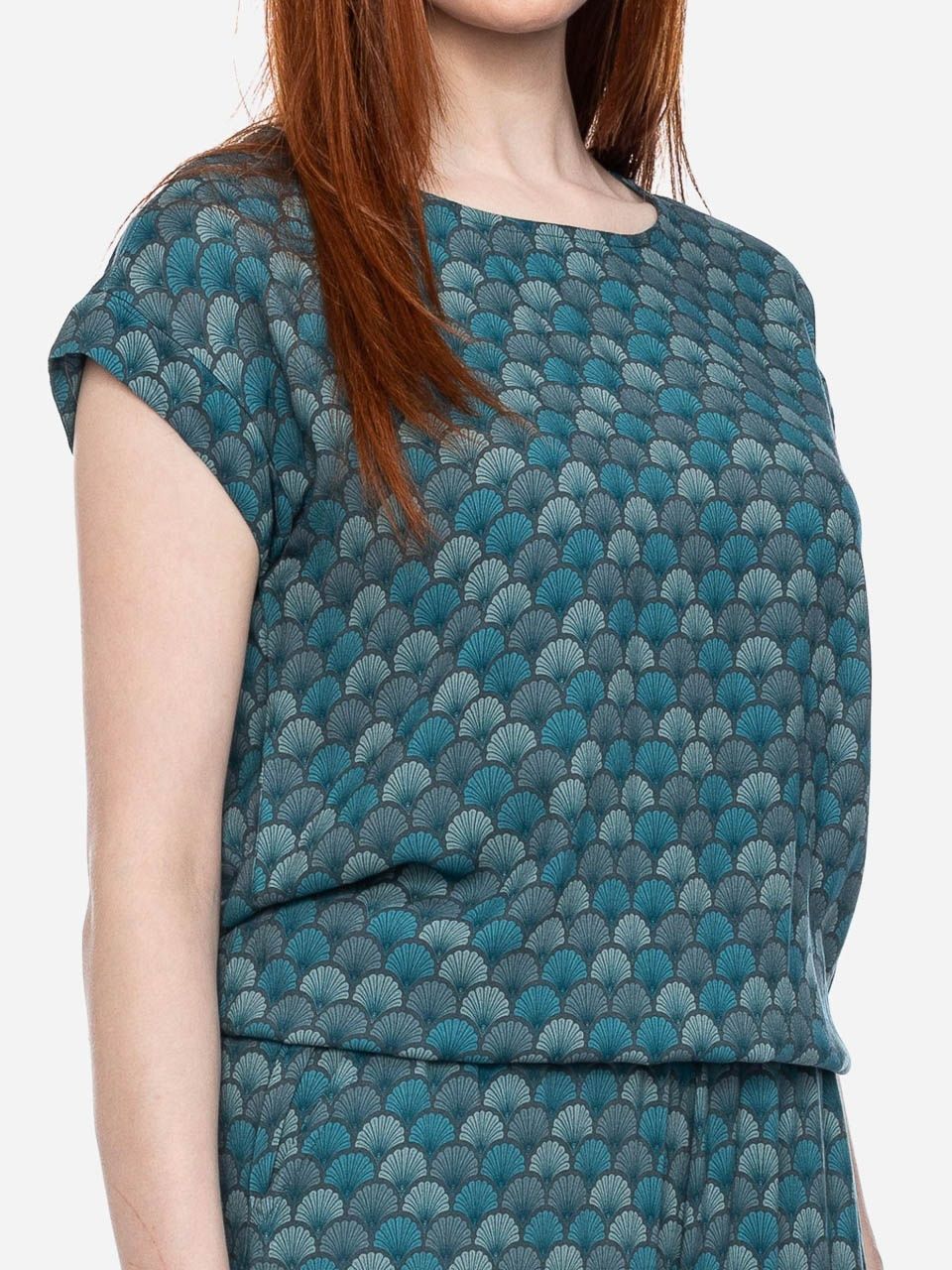 ATO Berlin | Retro shirt Leo met blauw teal gingo-patroon, bioviscose
