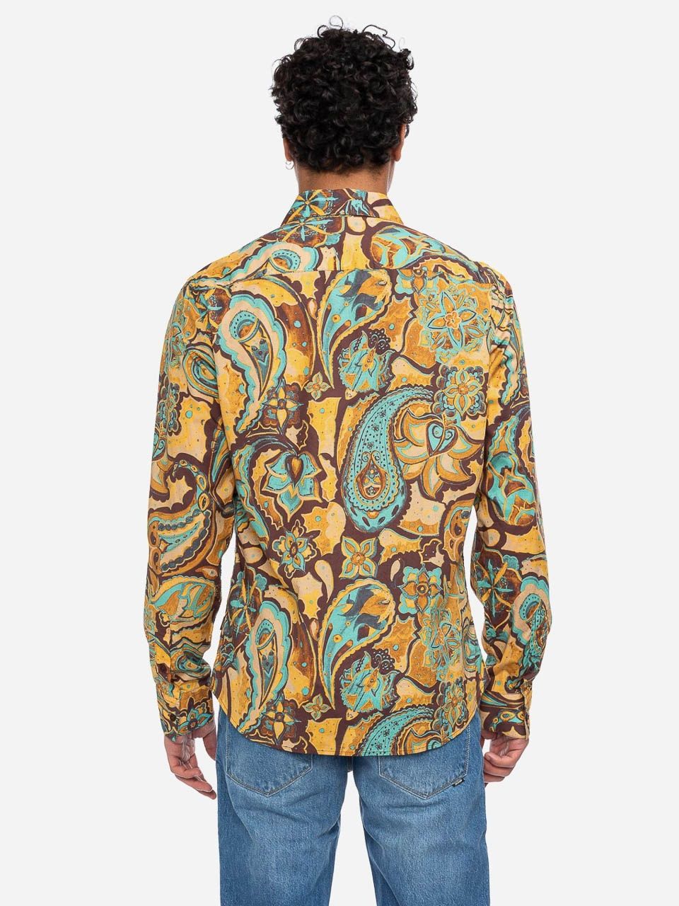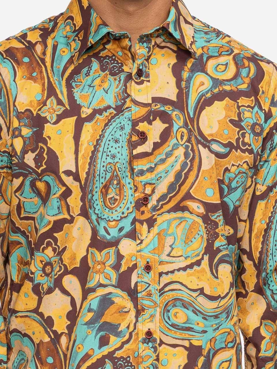 ATO Berlin | Soepel overhemd Tamuza met geel turquoise paisley patroon, biokatoen