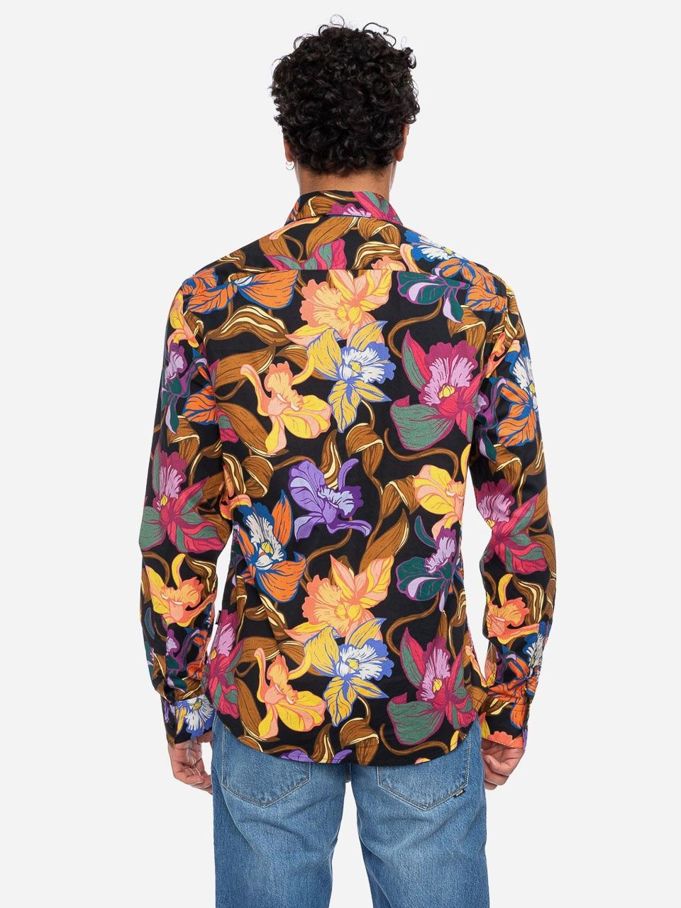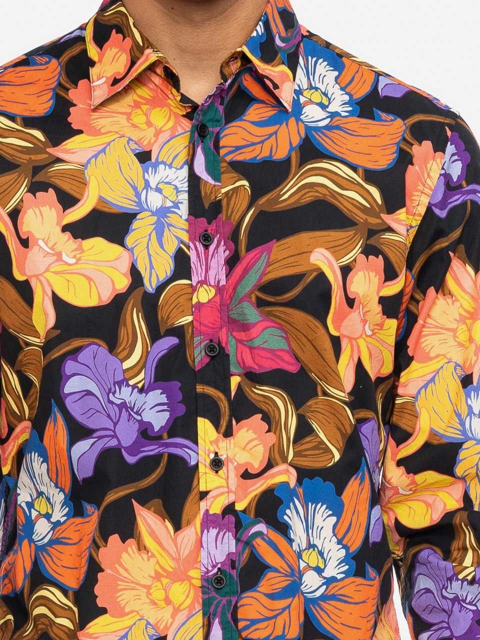 ATO Berlin | Soepel overhemd Tamuza met tropisch oranje geel bloemen patroon, biokatoen