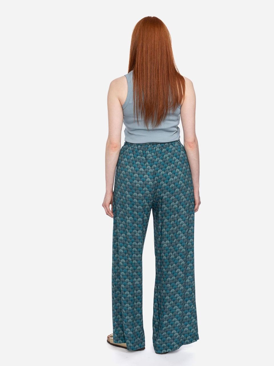 ATO Berlin | Soepele broek Benna, petrol teal groen retro patroon