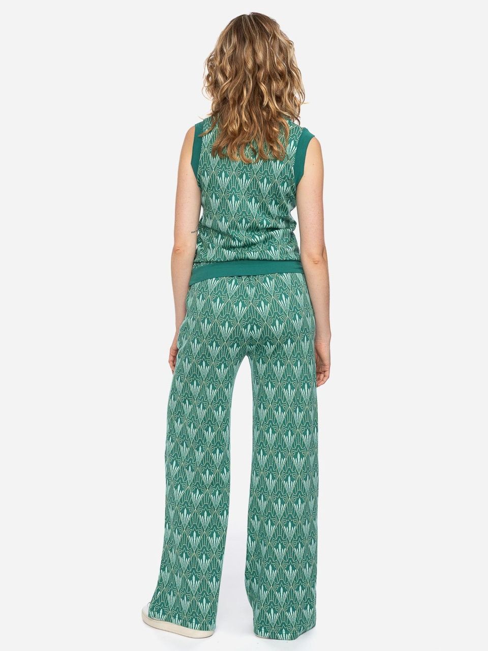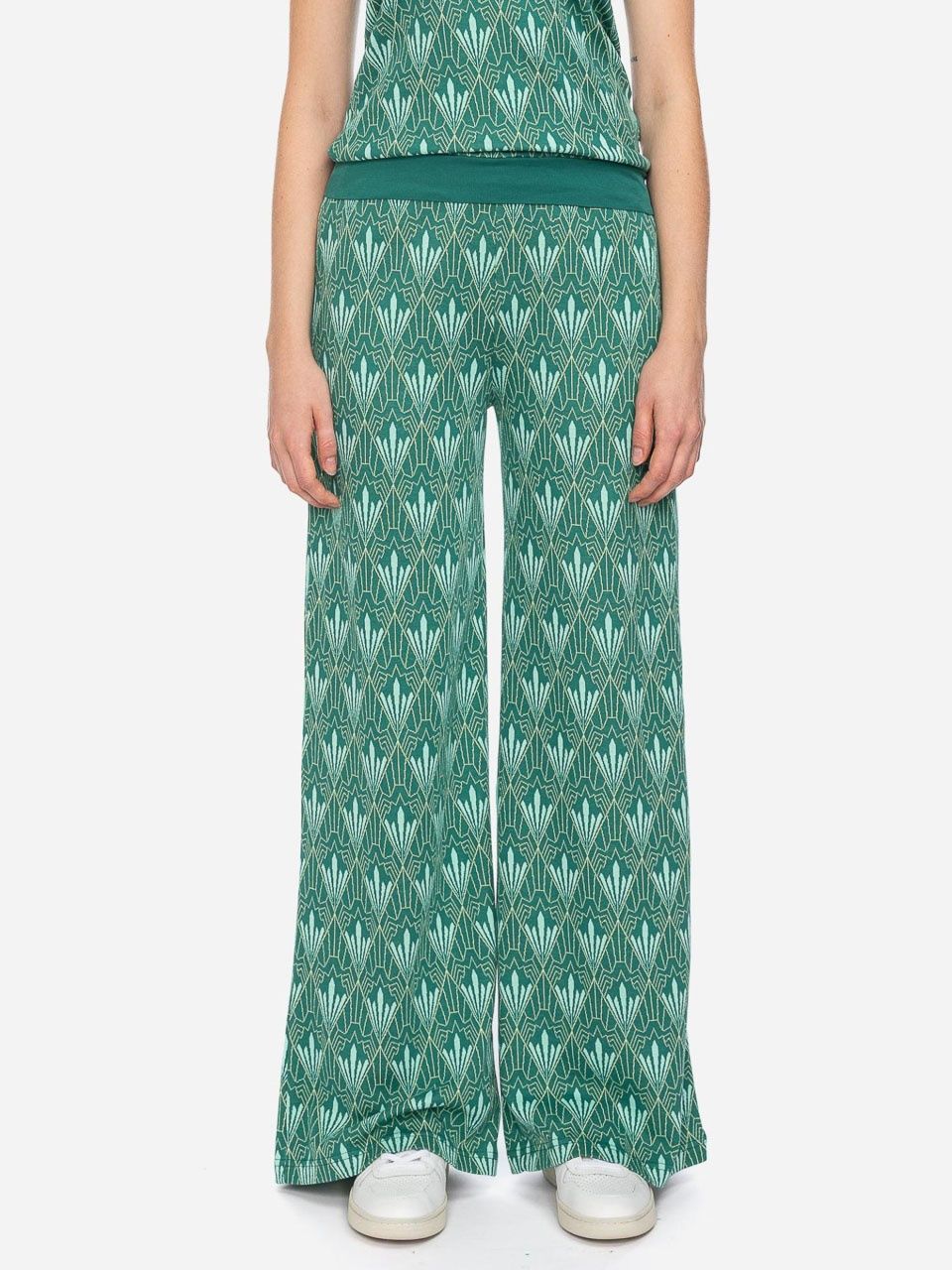 ATO Berlin | Soepele broek Ereski met lichtgroen Jacquard print