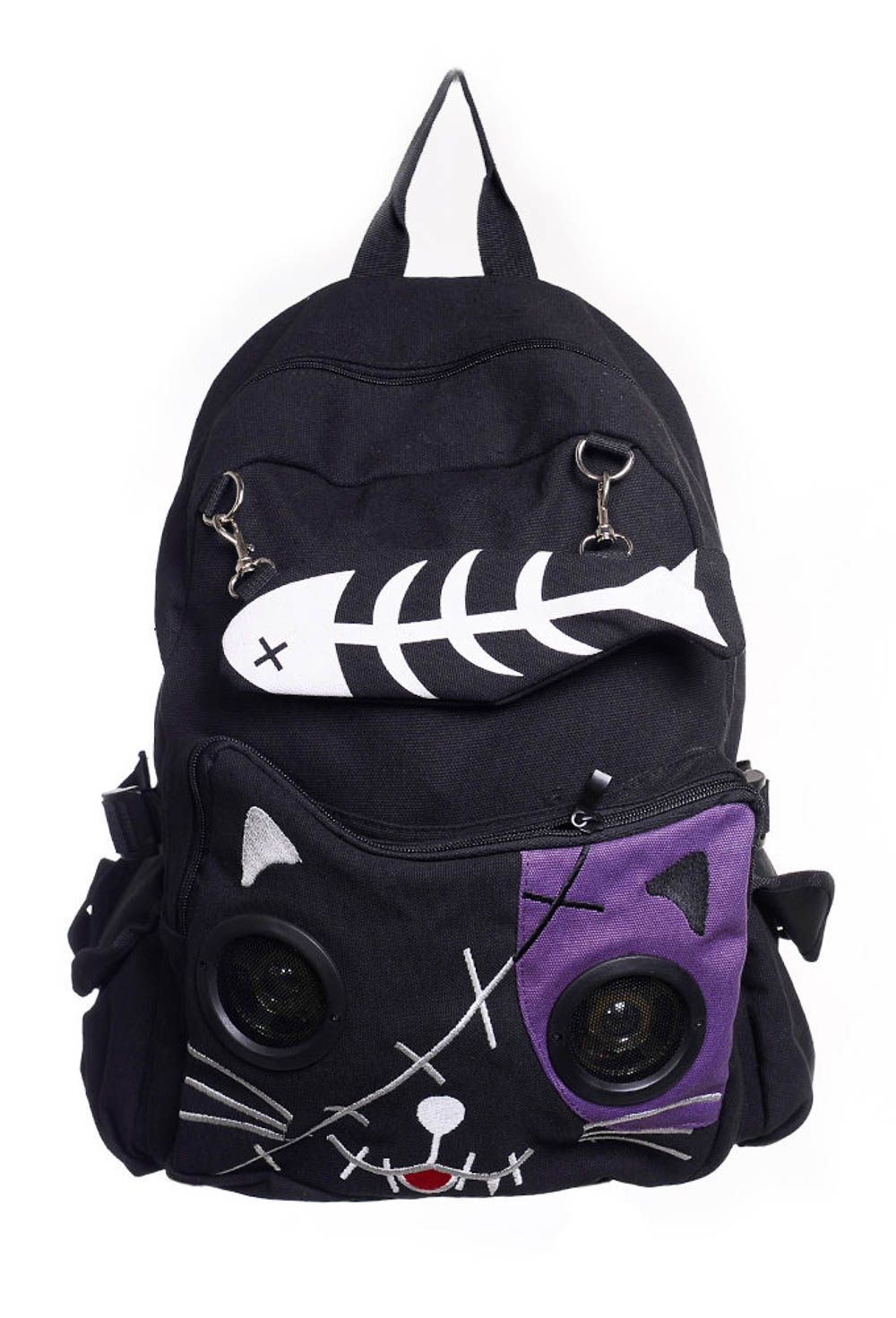 Banned | Rugtas Kitty met speakers in de ogen van de katten snoet met paars