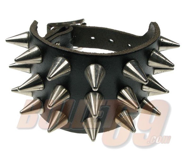 Bullet69 | Brede leren armband met 3 rijen 1cm cone spike studs