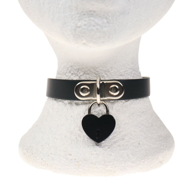 Bullet69 | Choker van zwart leer met een zwart hartvormig slotje