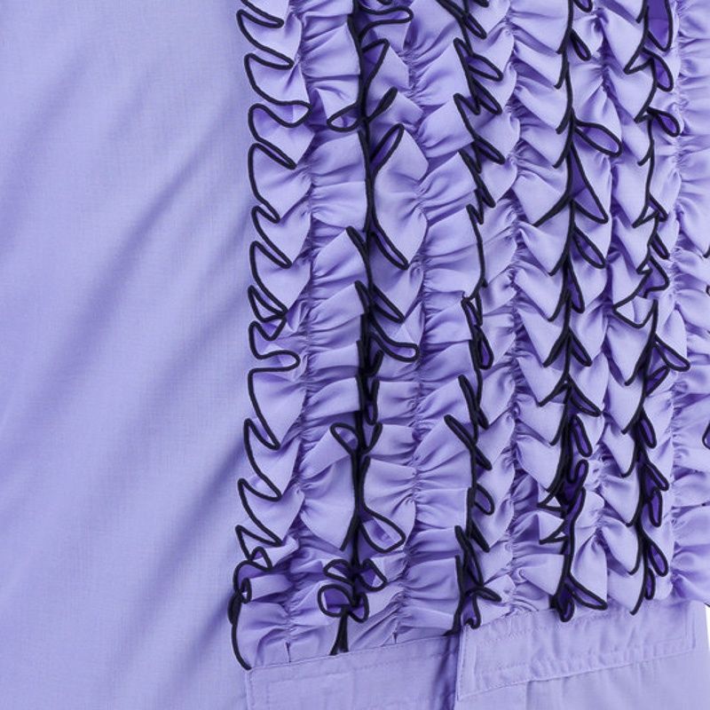 Chenaski lila overhemd met blinde knoopsluiting en lila ruche met donker paarse trim. Klassiek rock en roll overhemd. De vorm van de verstevigde kraag en het getailleerde model geven de perfecte pasvorm met een jaren 50-60 uitstraling. Helemaal in fifties-stijl met een stoere denim of pantalon en bretels.