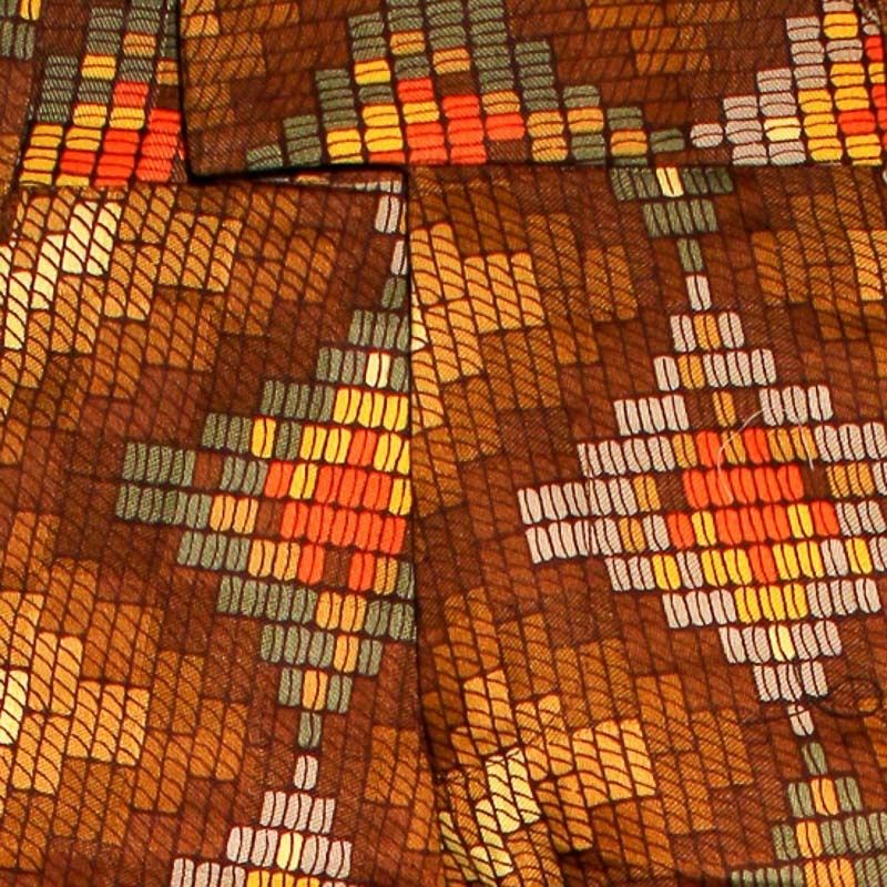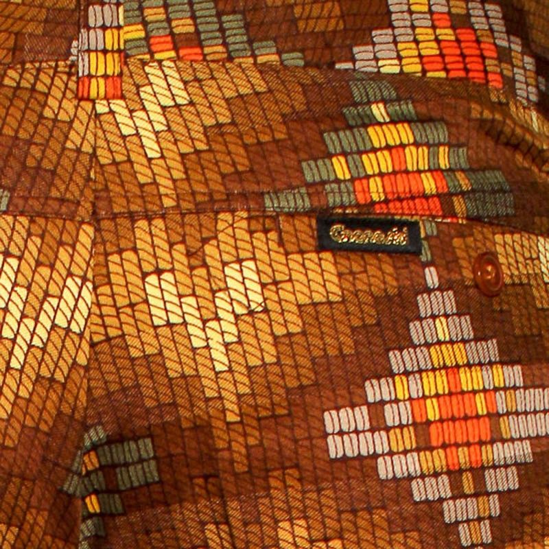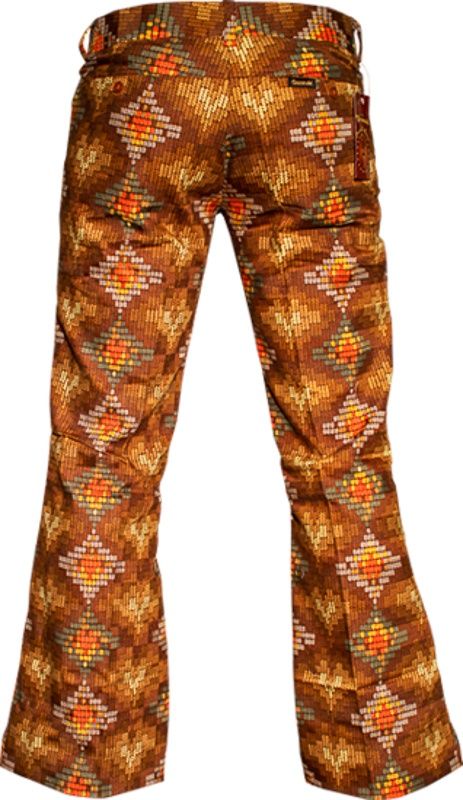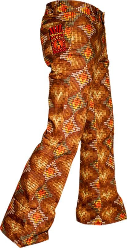 Chenaski | Pantalon Snake met uitlopende wijde pijp, bruin oranje retro patroon
