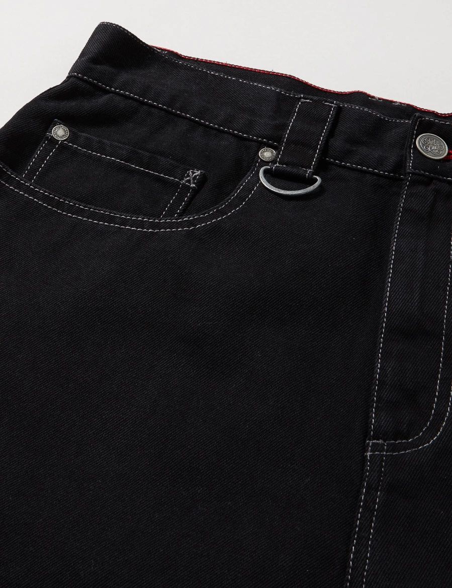 Oversized baggy skate shorts in utility-stijl, in donkere denim met contrasterende stiksels.
