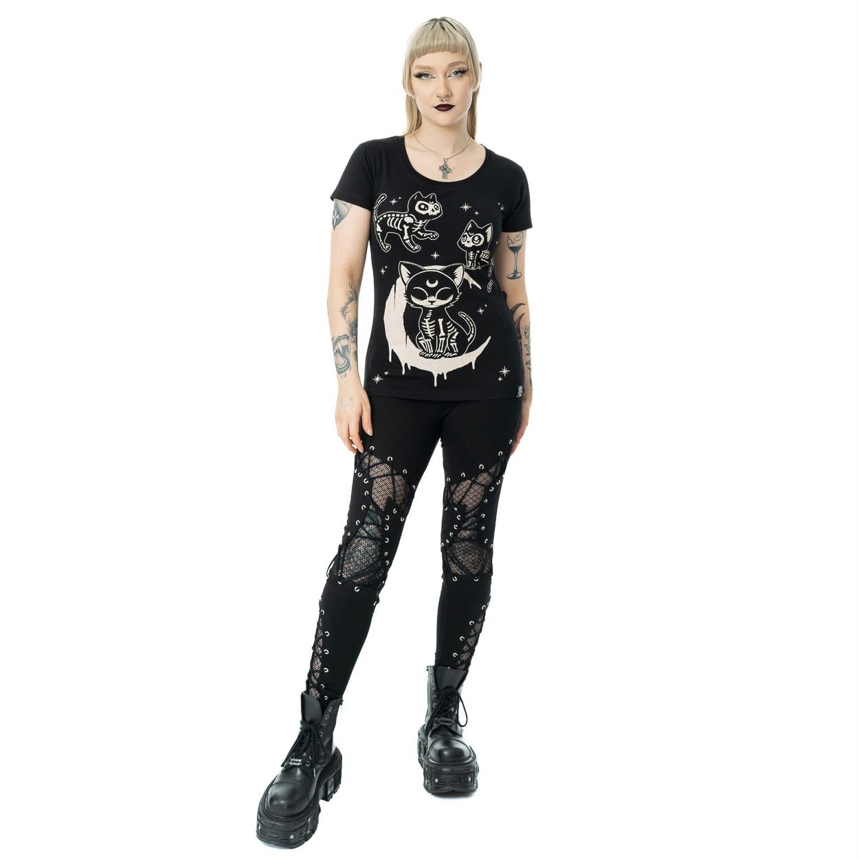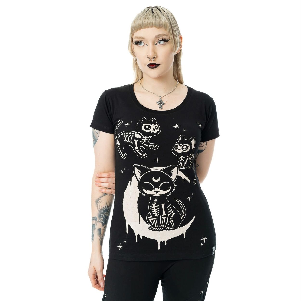Cupcake Cult | T-shirt Moonlight met skelet katjes