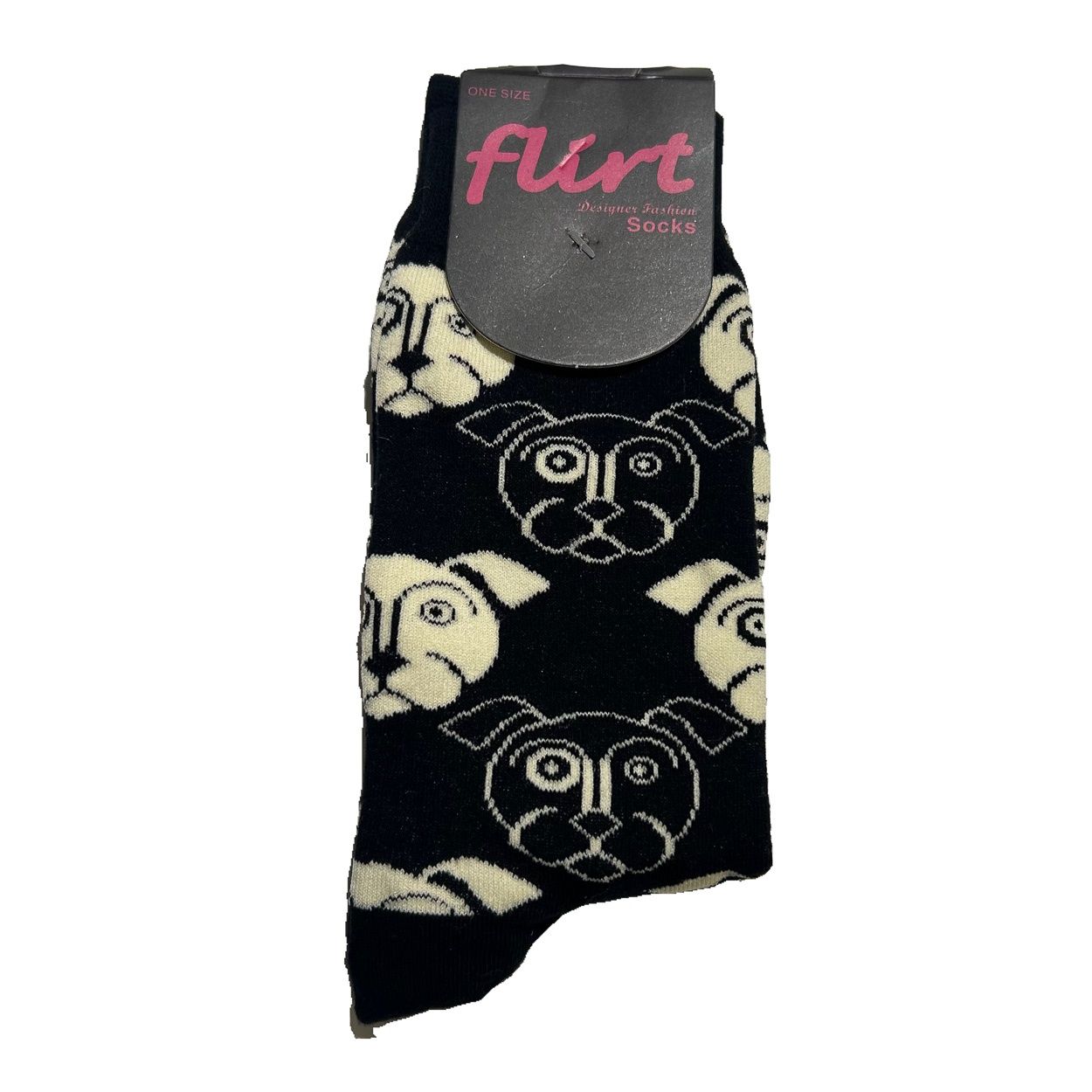 Flirt | Dames sokken zwart met witte hondensnoetjes