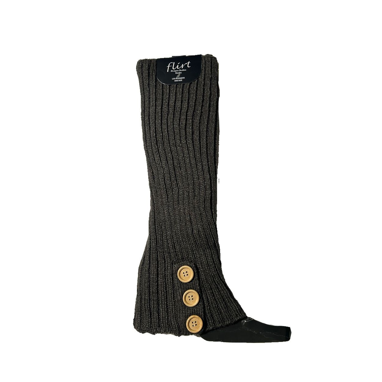 Flirt | Grijze beenwarmers van zacht boord-breisel met 3 sierknopen