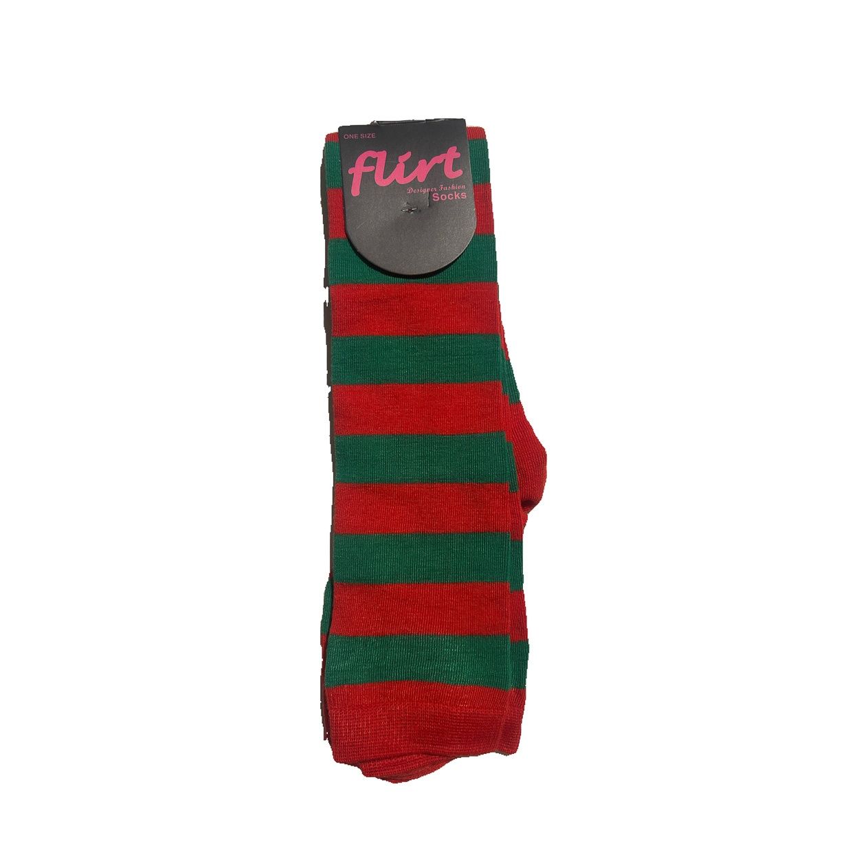 Flirt | Lange sokken met brede groen rode strepen