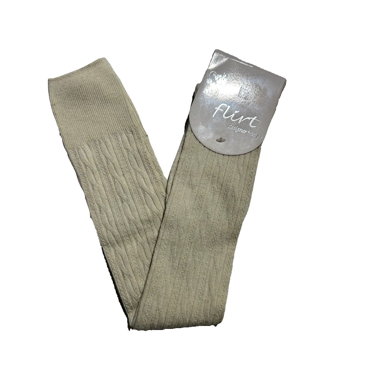 Flirt | Overknee sokken effen cremé met fijn kabelpatroon, wol