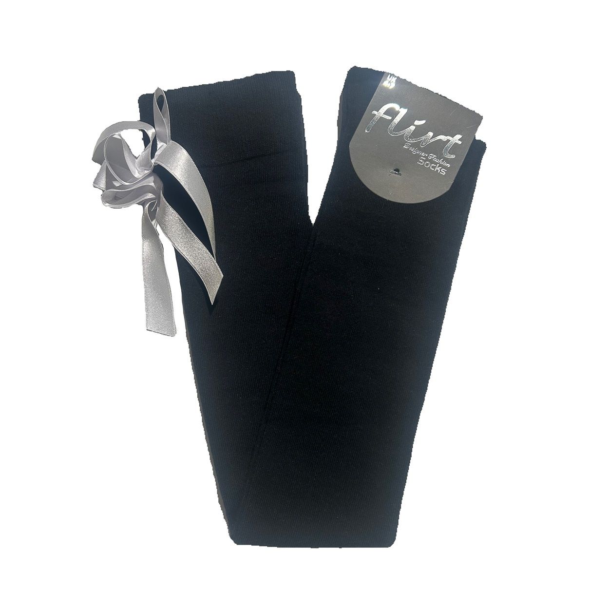 Flirt | Overknee sokken zwart met witte strik, lolita-stijl