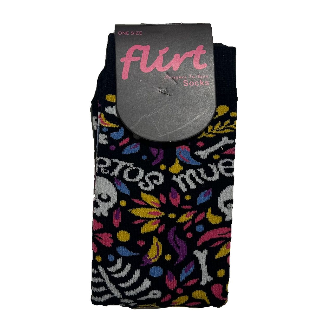 Flirt | Sokken zwart met paars - geel en Muertos skull