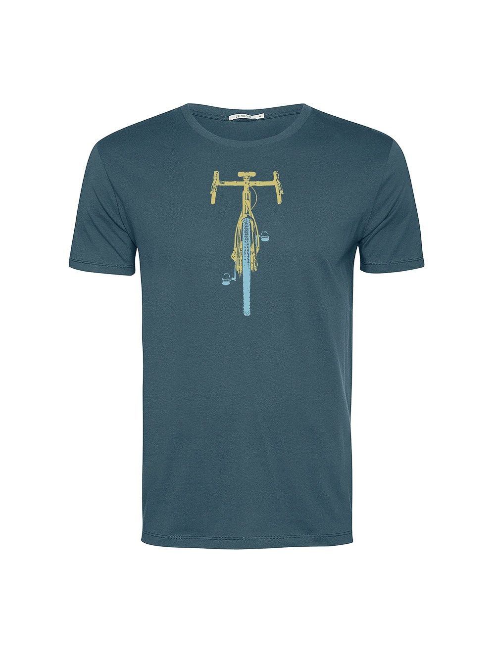 Green Bomb | T-shirt Bike front stamp, blue stone bio katoen
