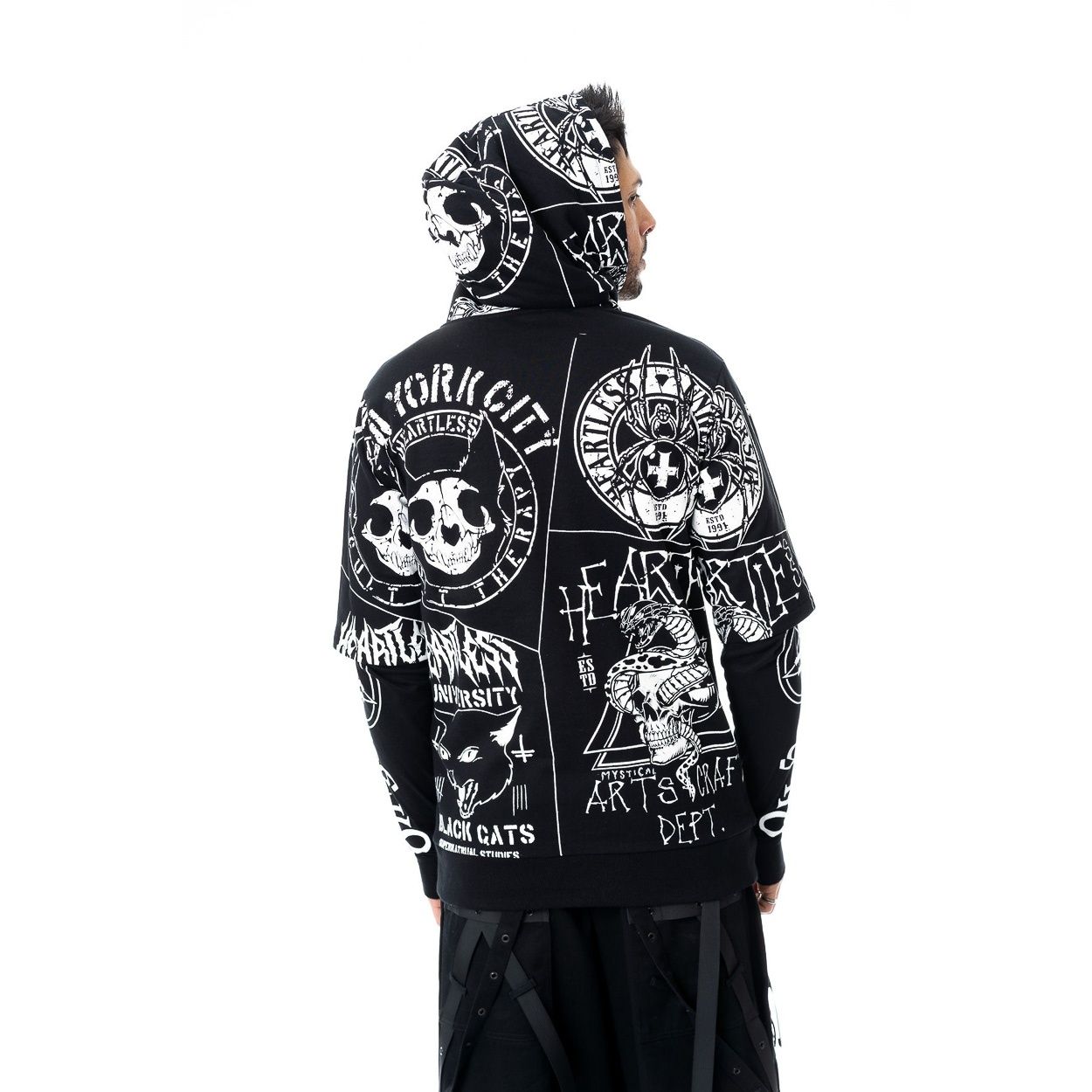 Heartless | Dark Academia hoody met mysterieuze skull, spider en cat print