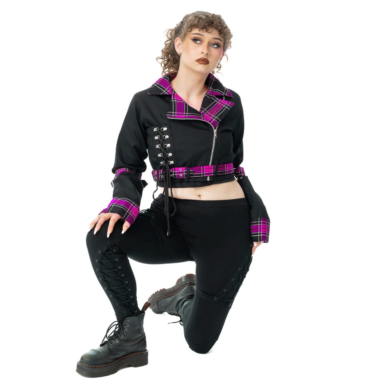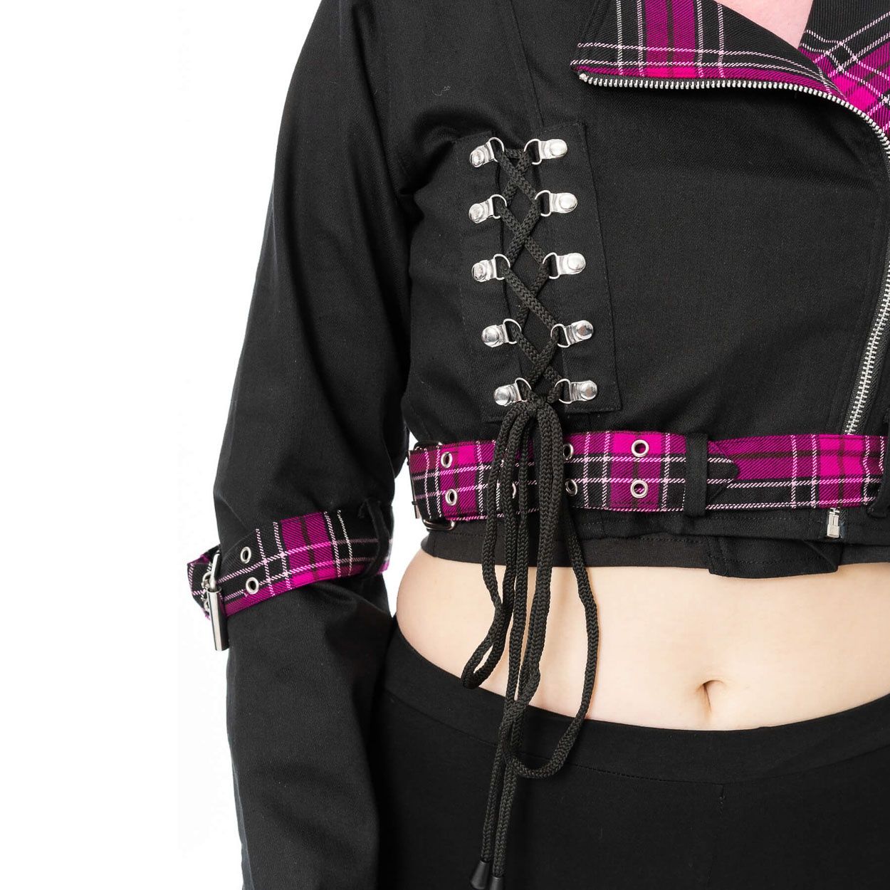 Heartless | Kort Punkjasje Hexbourne met corset detail, gespen en roze tartan