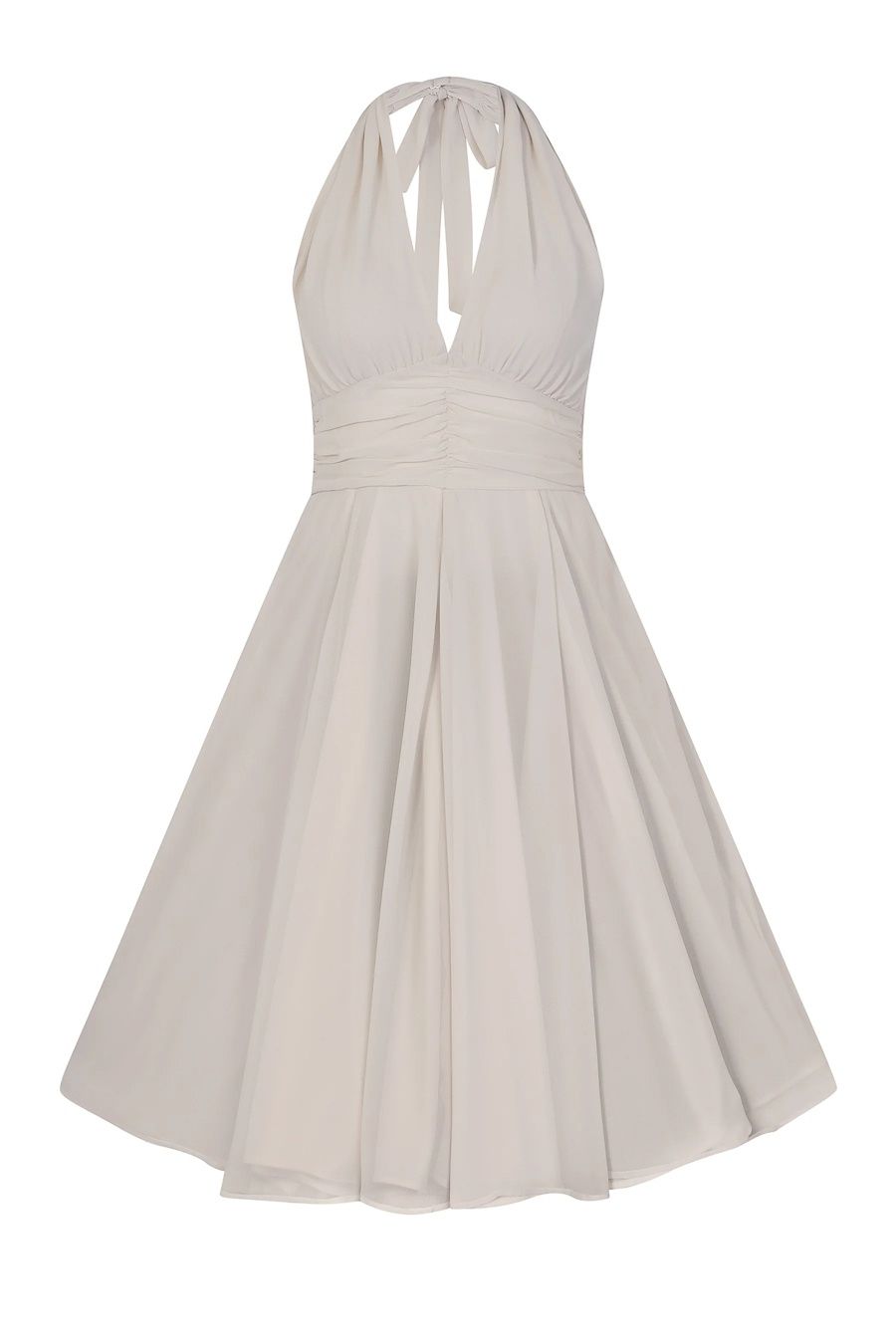 Hell Bunny | Jaren 40 jurk Monroe met halter-halslijn, creme-wit swingmodel