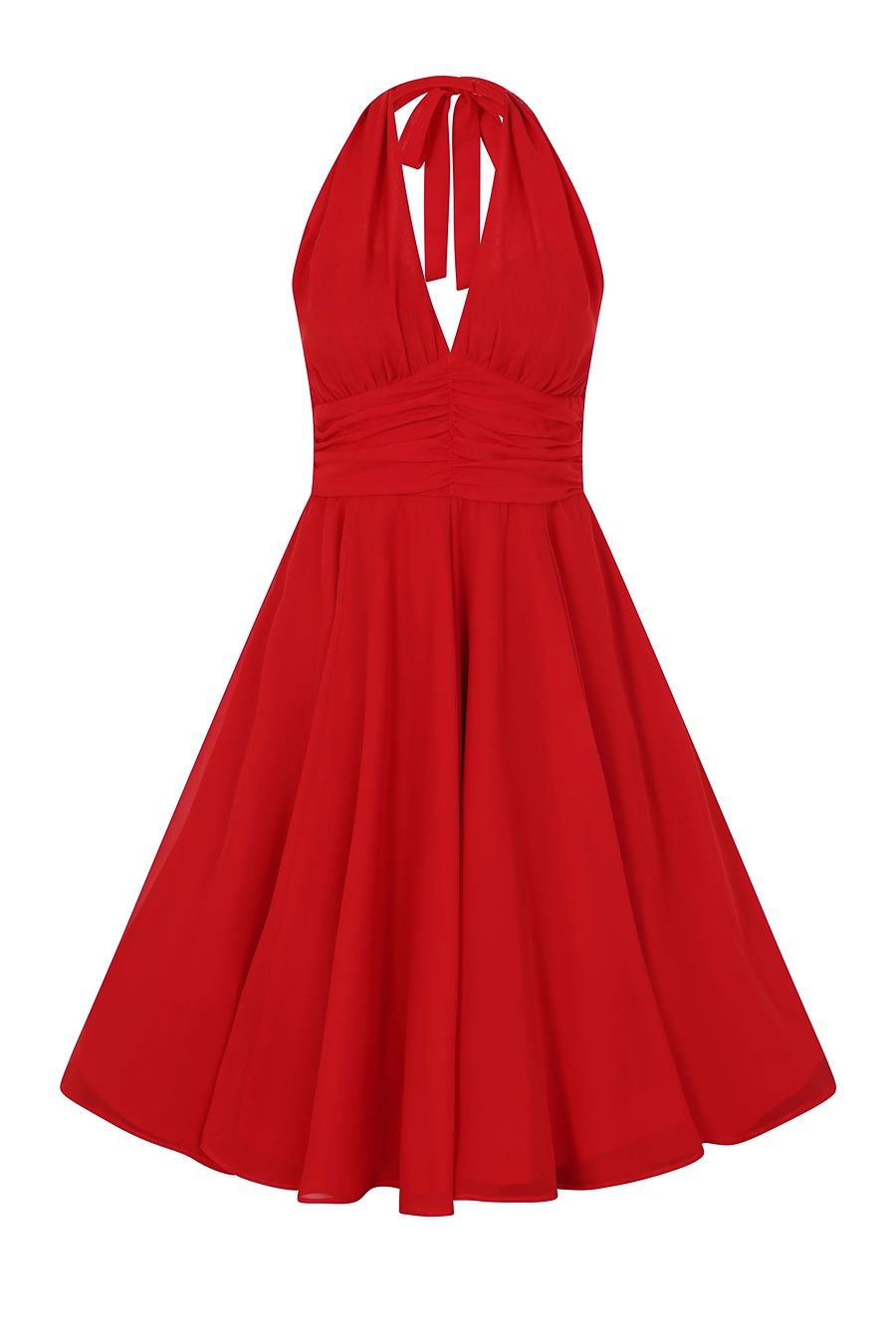 Hell Bunny | Jaren 40 jurk Monroe met halter-halslijn, rood swingmodel