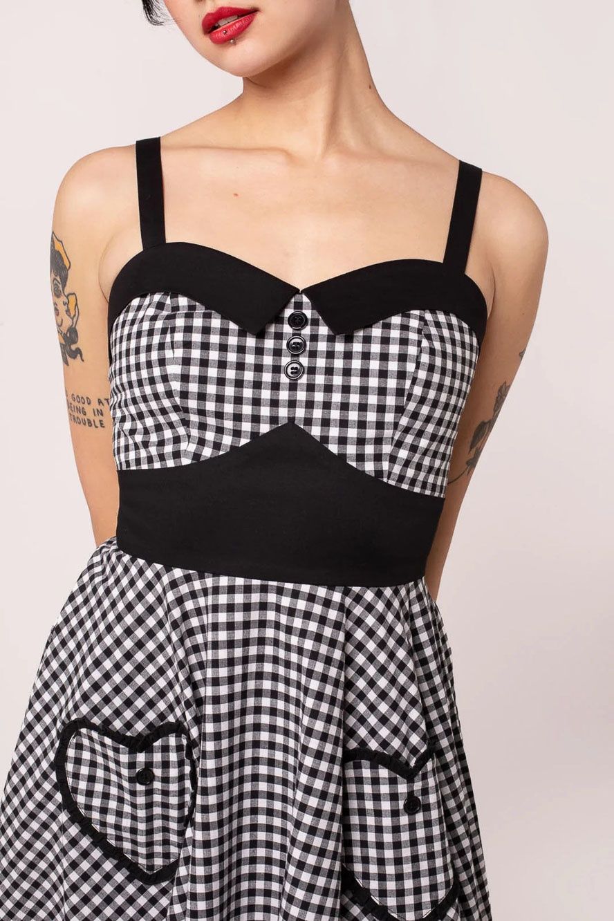 Hell Bunny | Jaren 50 jurk Mel sweetheart halslijn, van een zwart wit gingham ruitje