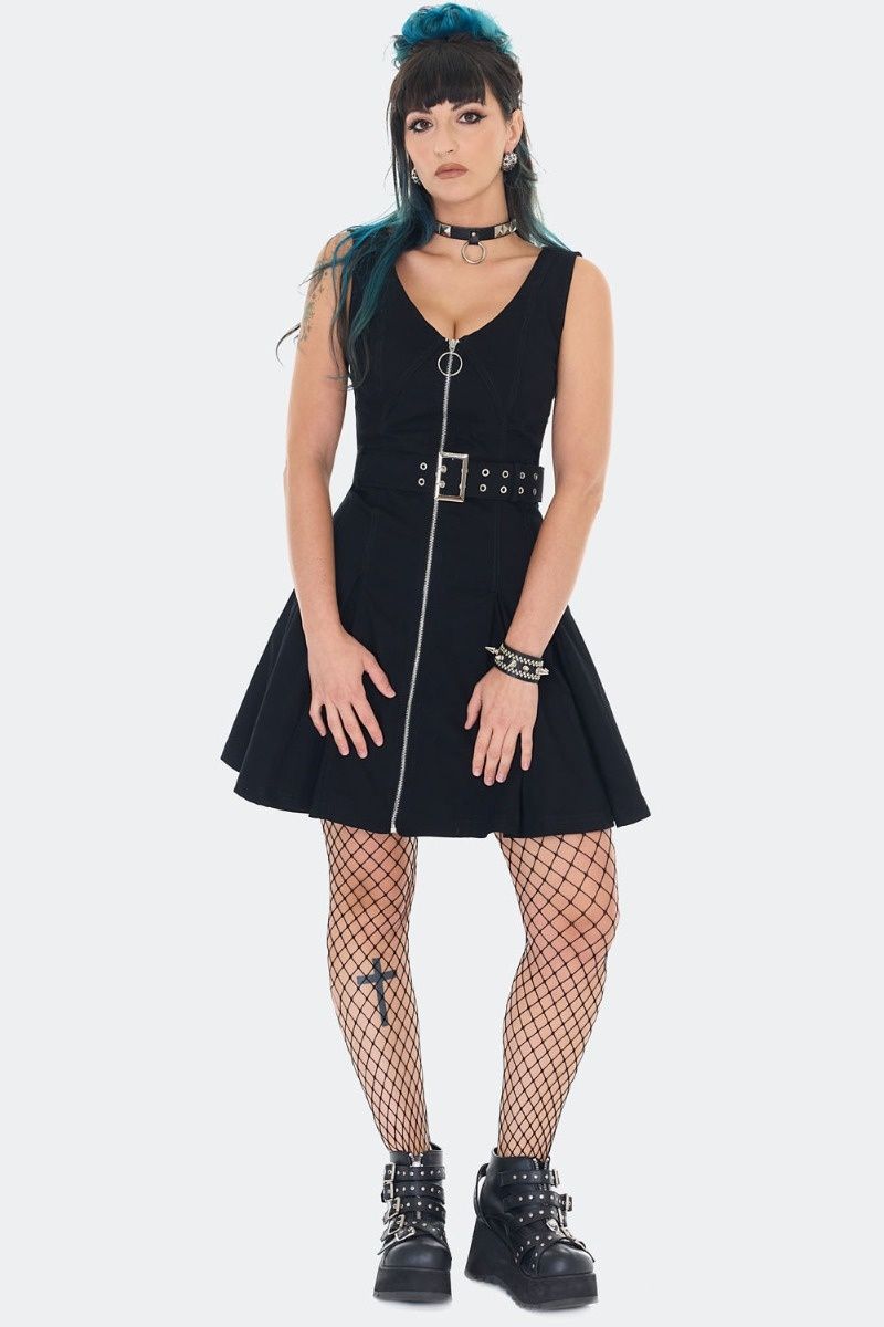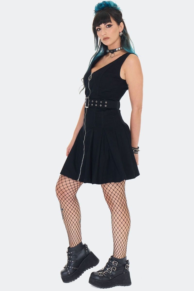 Jawbreaker | Jaren 80 Mini punk-jurk met metalen rits en riem met gesp