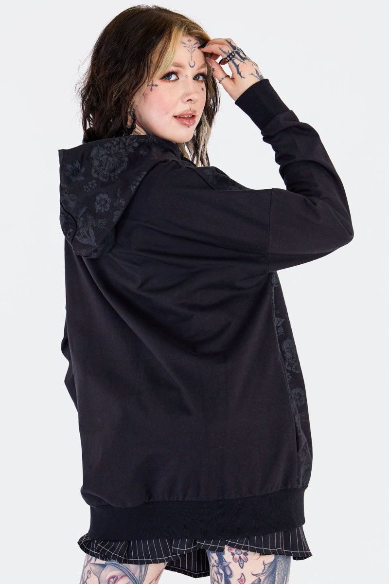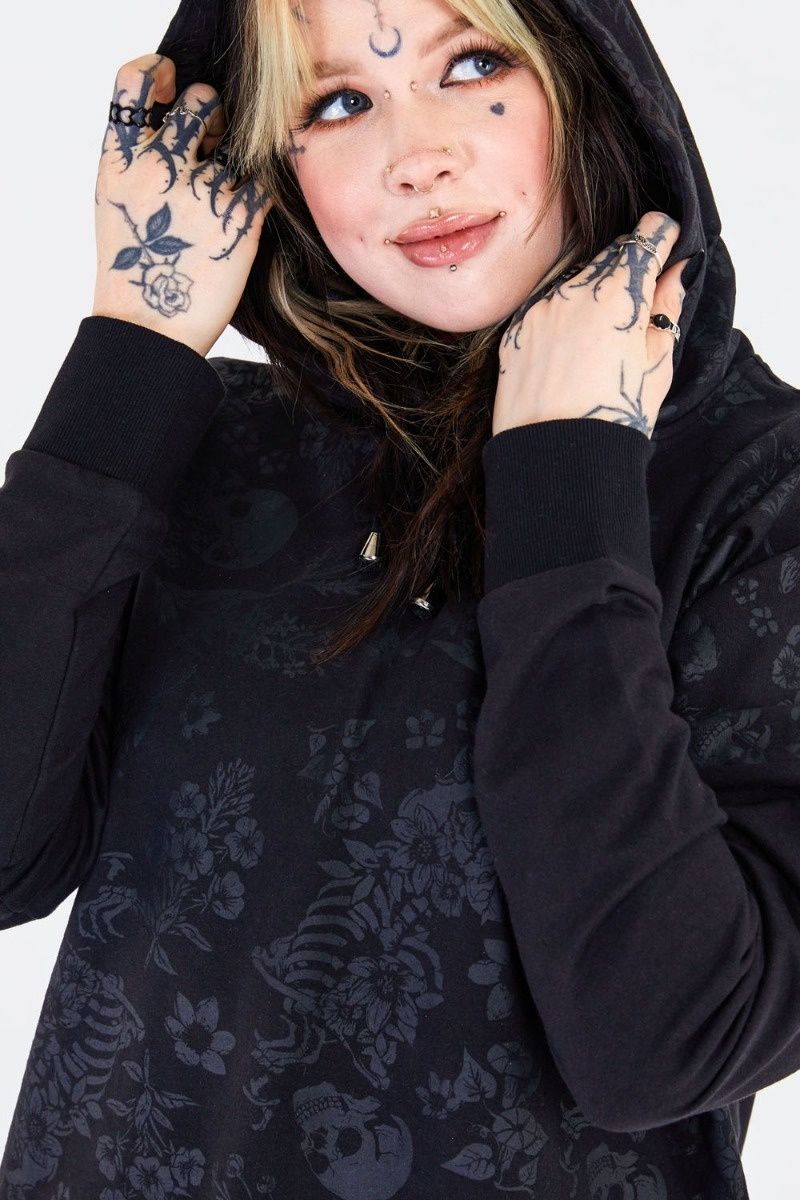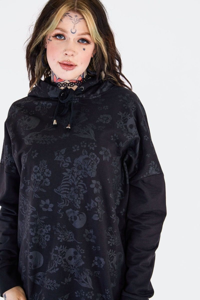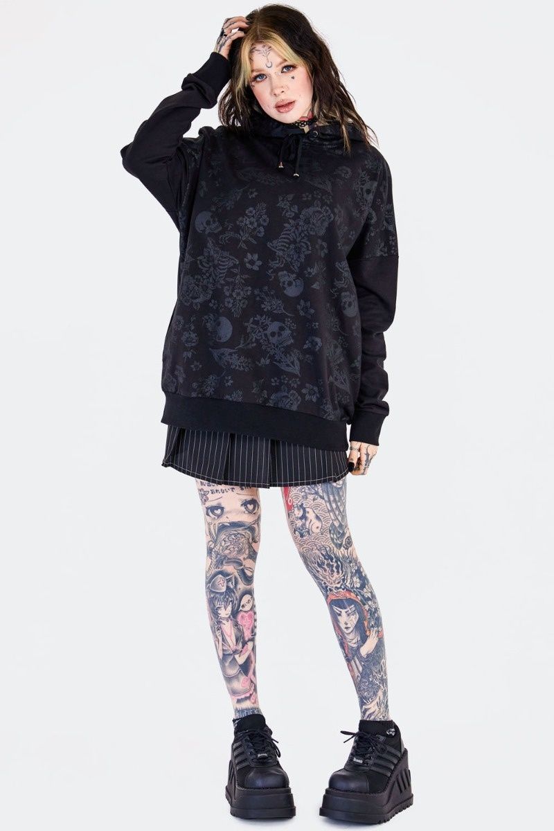 Jawbreaker | Oversized Gothic hoody met skull and flower print