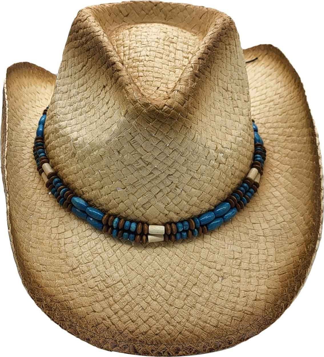 Major wear | Klassieke zomerse Cowboyhoed met burned randen en kralen hoedband