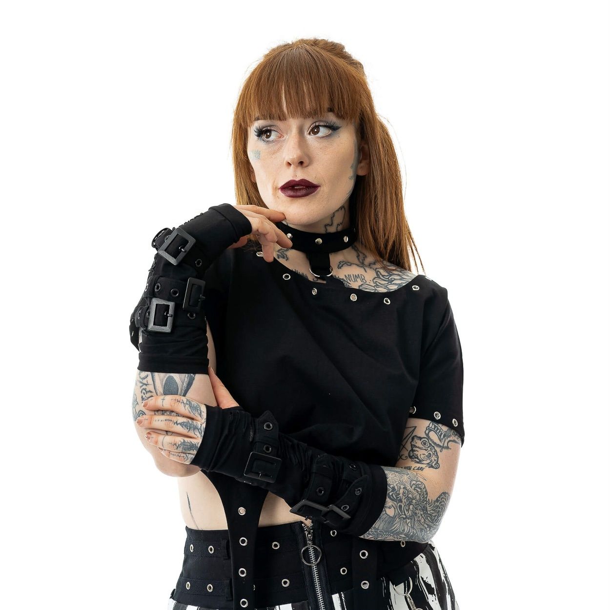 Poizen Industries | Armwarmers Willow zwart met gespen
