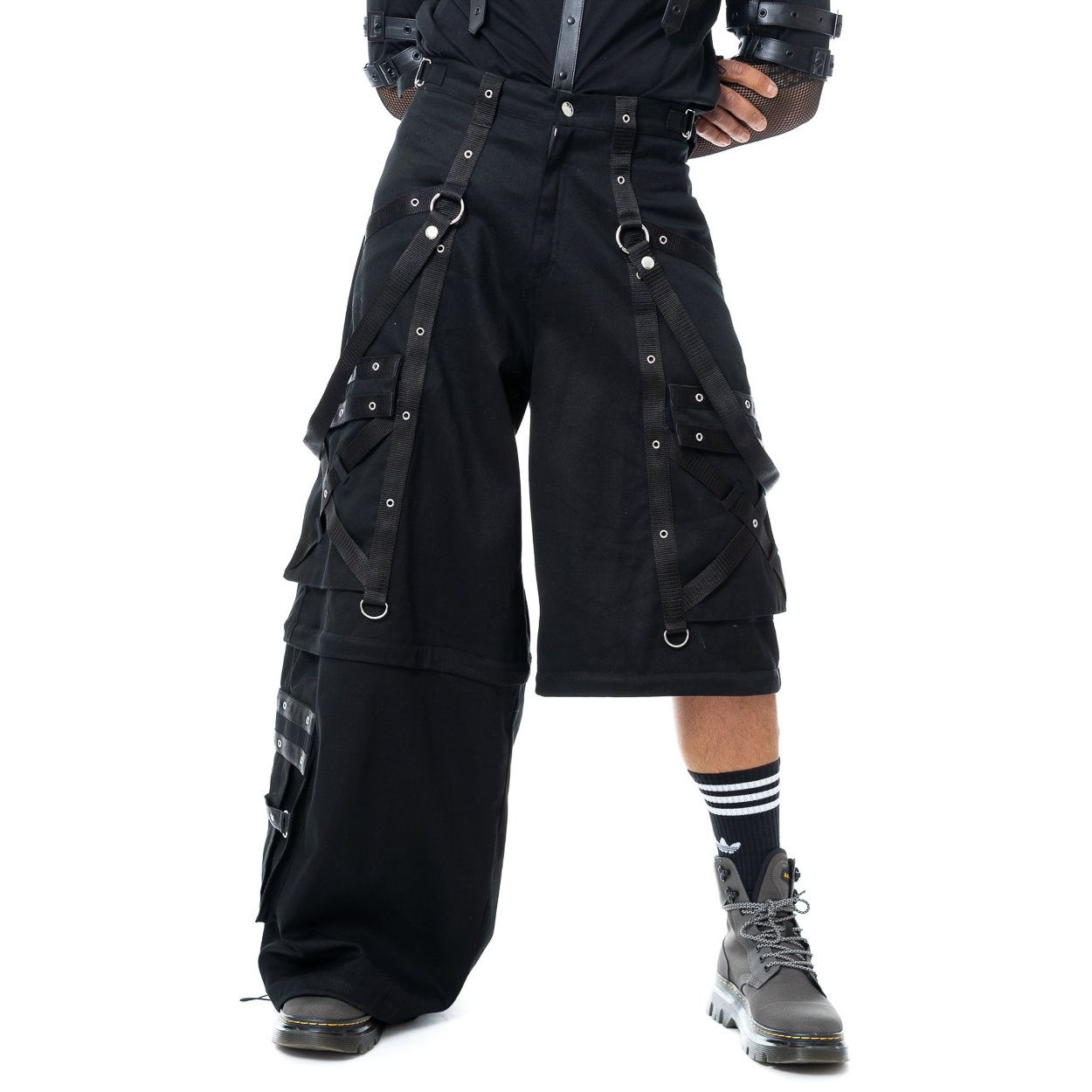 Poizen Industries | Gothic broek Lucien zwart met straps, zakken en ringetjes