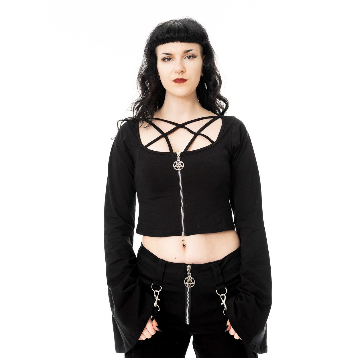 Poizen Industries | Gothic top Eclips met pentagram hals en uitlopende mouwen
