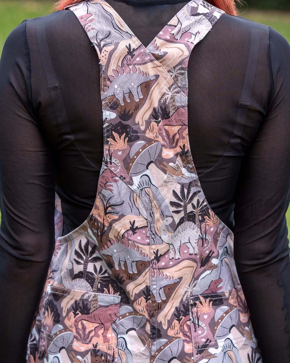 Deze liefdadigheidsprint, ontworpen door Milkteef, combineert aardse neutrale tinten met een prehistorische twist: dinosaurussen die door dromerige landschappen zwerven en een verrassende UFO die voorbijvliegt! Gemaakt voor dagelijks avontuur, met stretch twill comfort, vijf handige zakken en een ethische ziel.