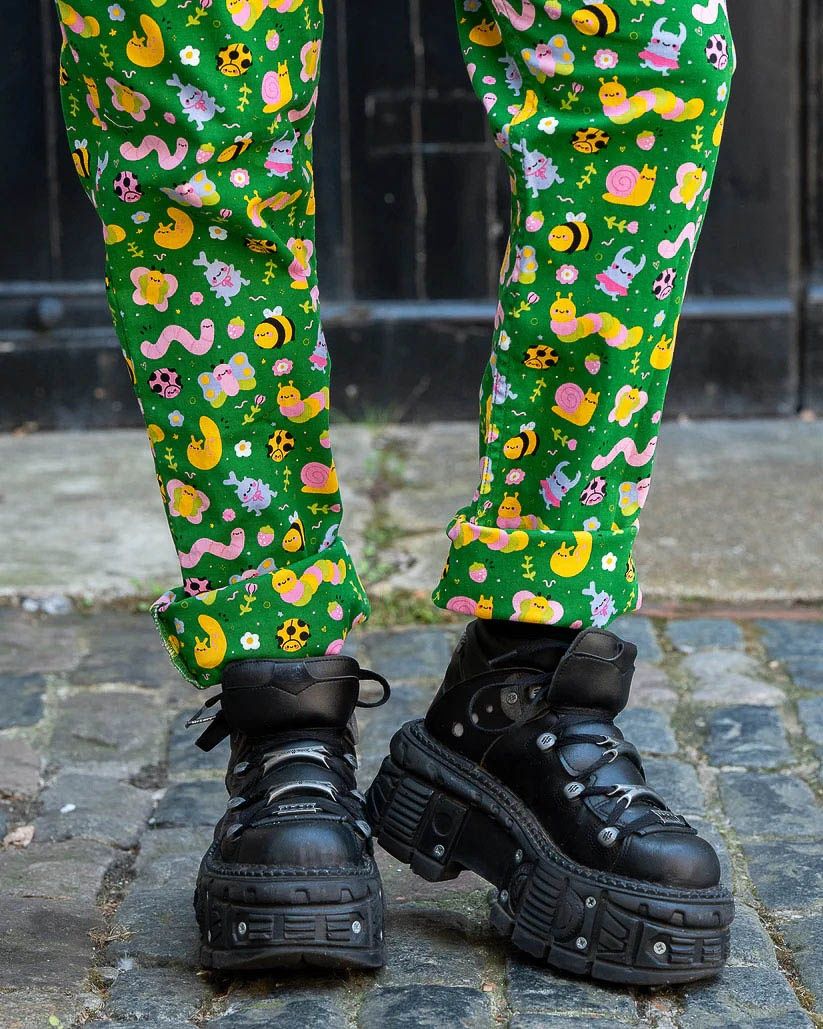 Zeg hallo tegen de schattigste kruipers die je ooit hebt gezien. Deze speelse insectenprint, exclusief ontworpen voor Rebel Romance door Dipstick Store, krioelt van pastelkleurige slakken, vrolijke wormen, naaktslakken en andere eigenzinnige beestjes. Hij is chaotisch, kleurrijk en vol vrolijkheid – net als de mensen die hem dragen.