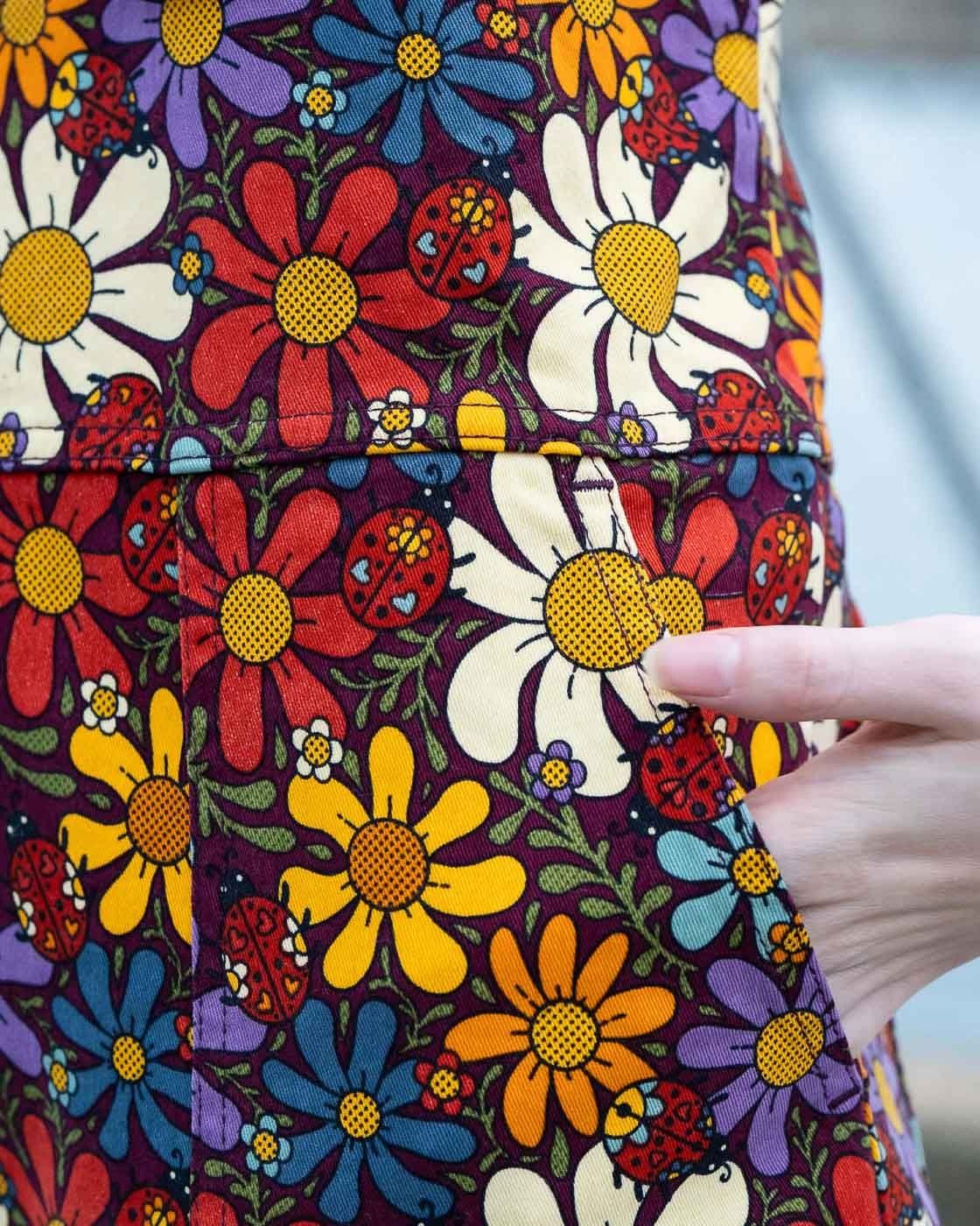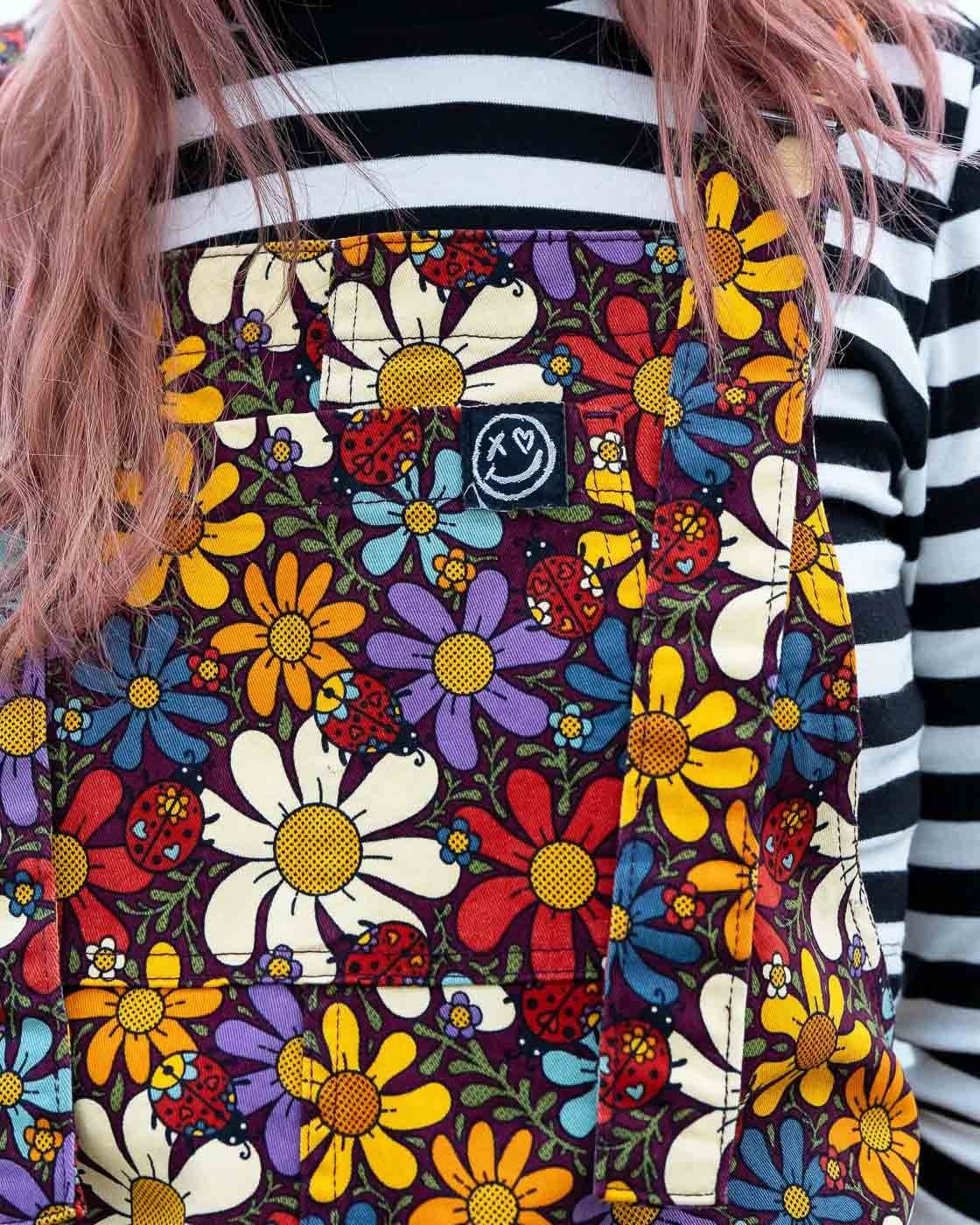 Word helemaal verliefd op onze Love Bug tuinbroek, met een levendige print van bloemen en lieveheersbeestjes, speciaal voor ons ontworpen door de fantastische Jen James Design. Deze tuinbroek barst van de kleur en zit boordevol speelse details. Hij valt op en laat je 'vliegen'!