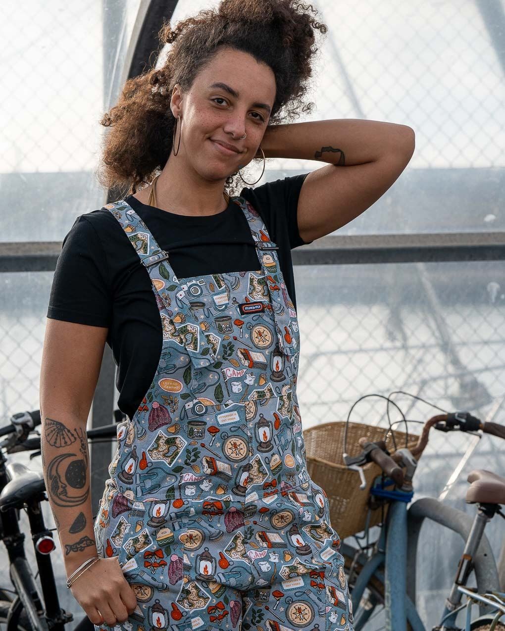 Maak vrolijke dansjes met de Run & Fly Camp club Stretch Twill Tuinbroek! Deze tuinbroek met vrolijke campeer atributen is een uitbarsting van vreugde. Eerlijk handgemaakt van comfortabele stretch twill, perfect om je dag mee te beginnen, of je nu lekker lounged, danst of gewoon opvalt. Met meerdere snack vakken en verstelbare bandjes is hij even praktisch als speels.