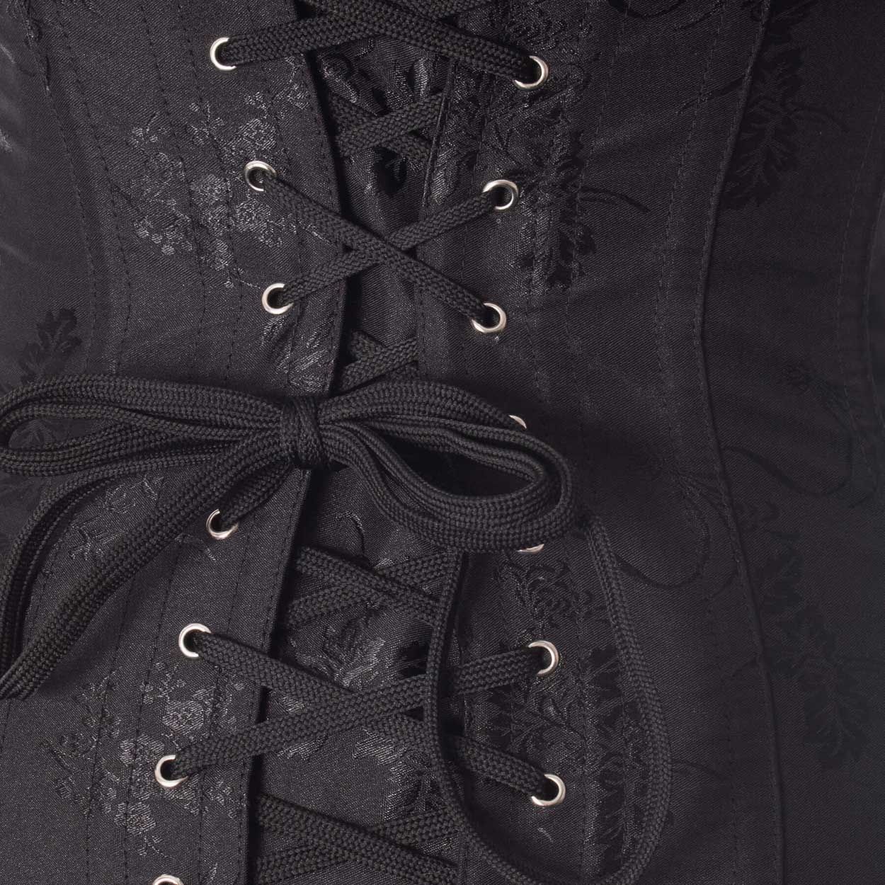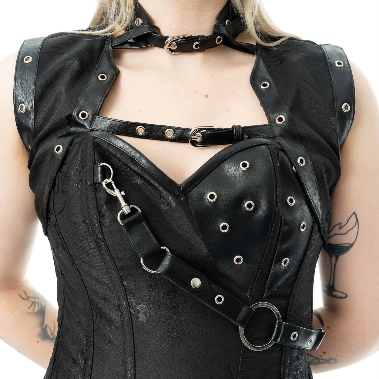 Vixxsin | Gothic corset Ebony, afneembaar schouderdeel met gespen en ringetjes