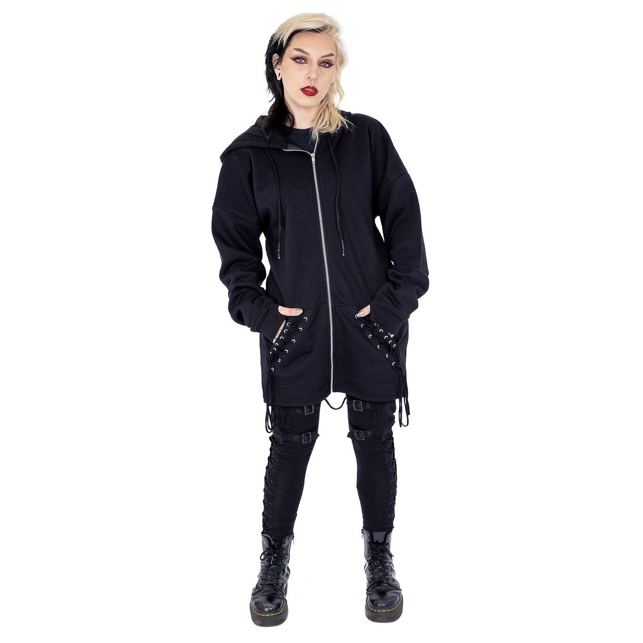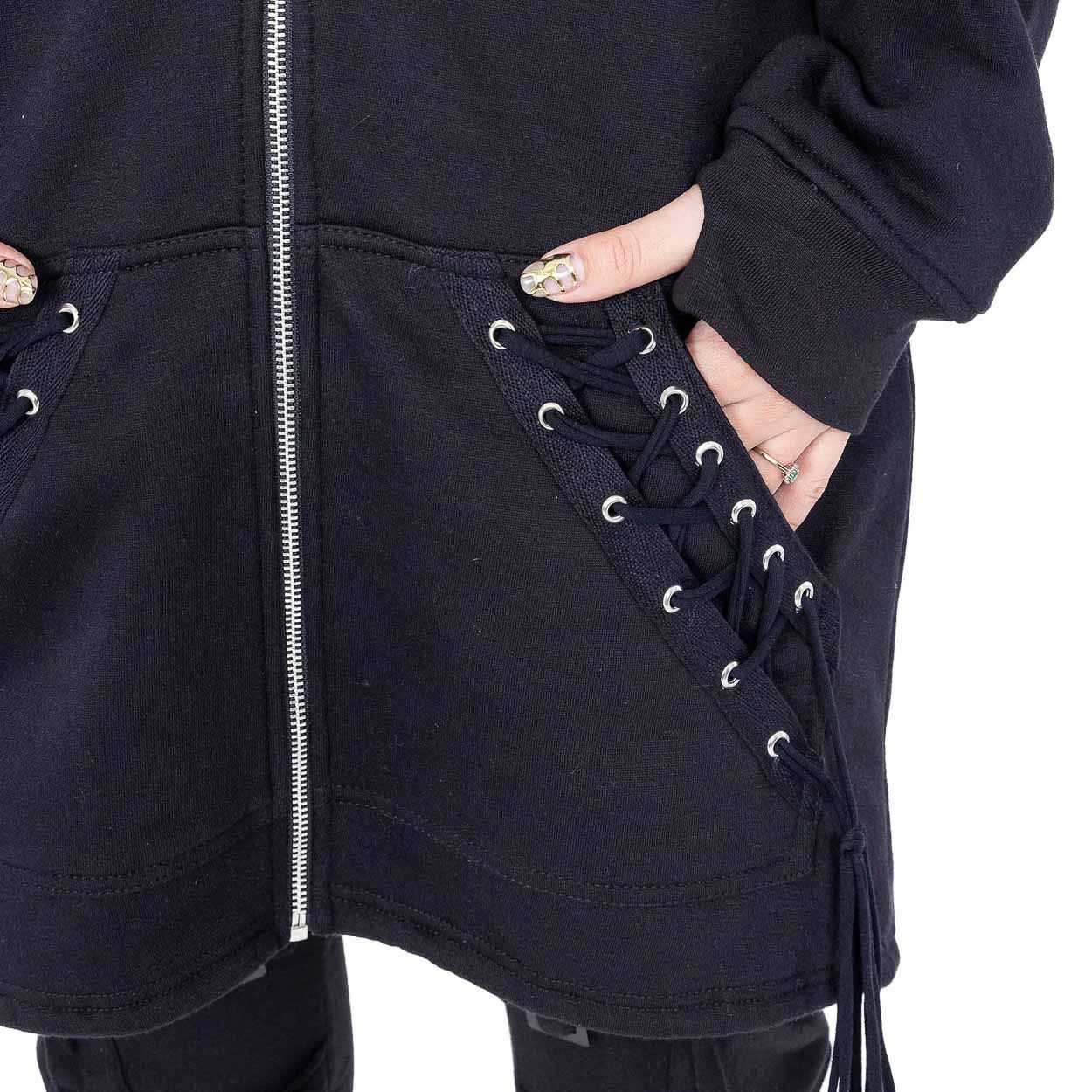 Vixxsin | Gothic hoody Asmodeus met veter details en vleugels op het rugpand