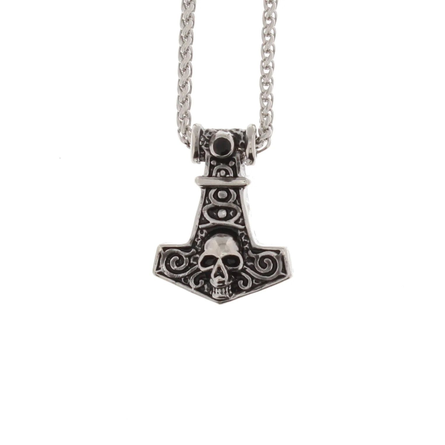Zacharia | Halsketting met Keltische hanger Thor's Hammer met skull, Rhodium