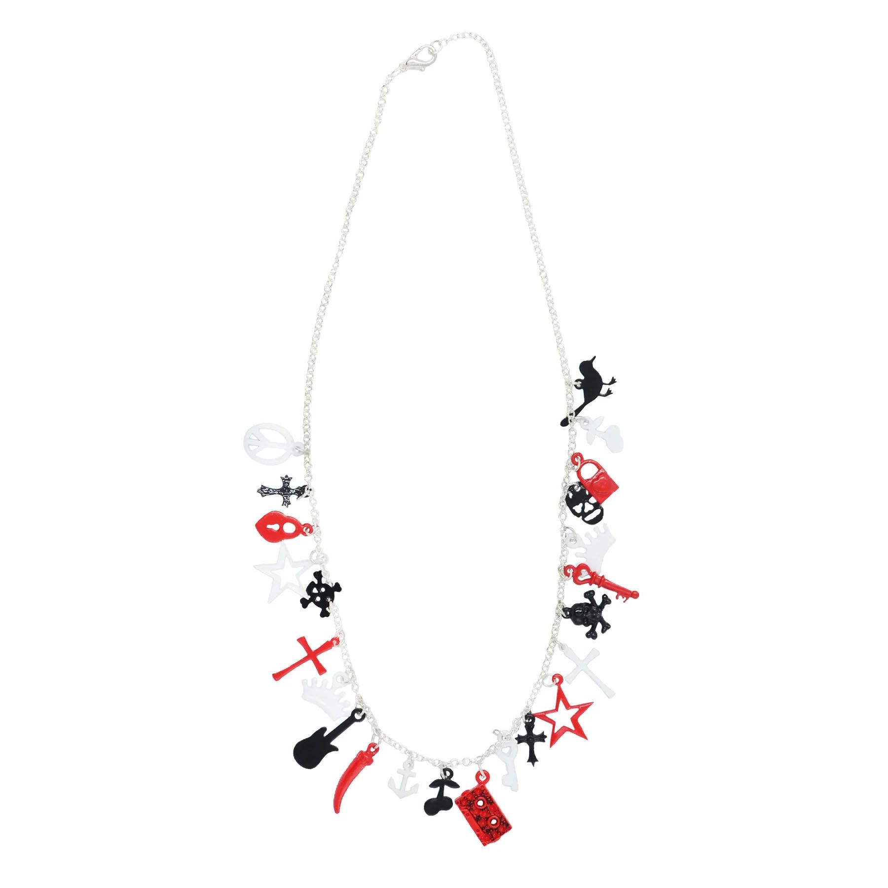 Zacharia | Halsketting met rood, zwart en witte Rock'n Roll hangertjes, sailorstijl