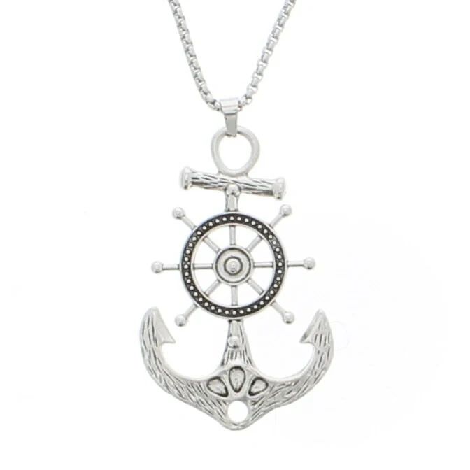 Zacharia | Halsketting met zilverkleurig anker met diamant en stuurwiel, sailorstijl
