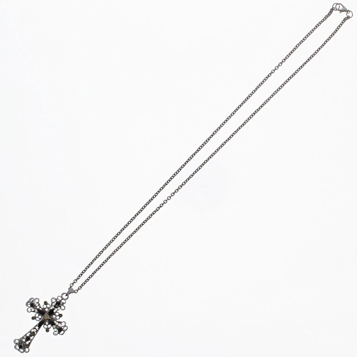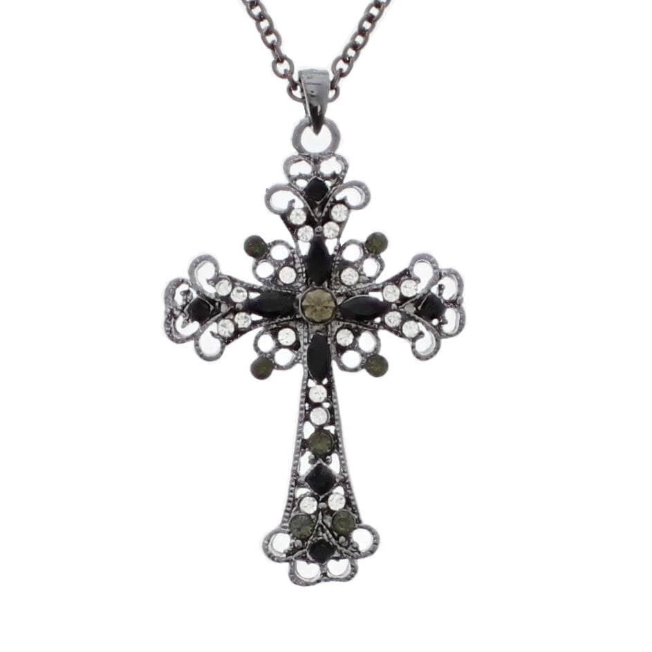 Zacharia | Halsketting van gun-metaal met een gothisch kruis en diamantjes
