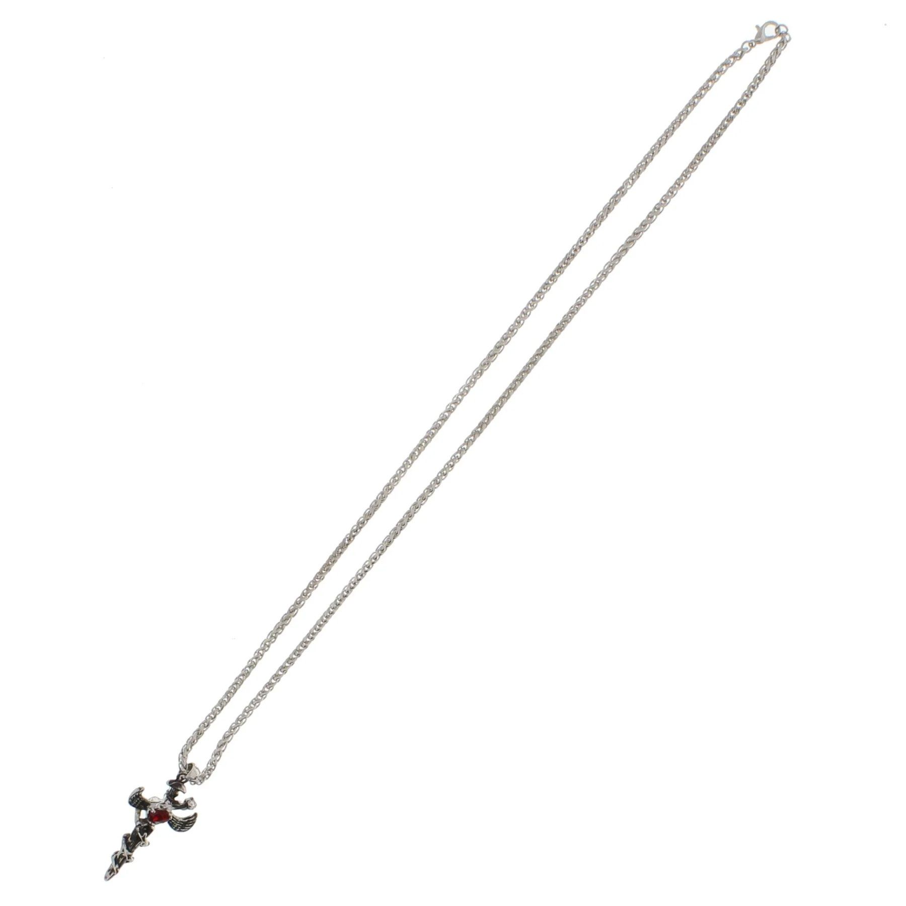 Zacharia | Halsketting zwaard met slang en rode ruby hart, rhodium